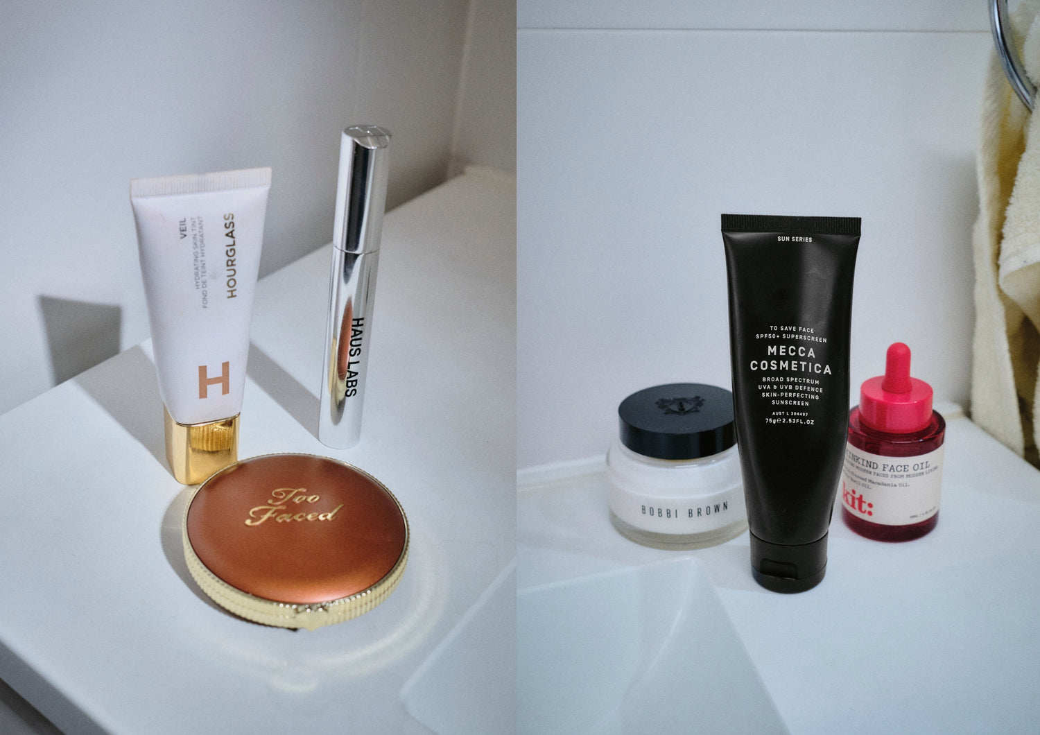 LIV: It's pretty simple, but I absolutely love this Skin Kind face oil by Kit. I live by this, I wash my face and I put it on first thing in the morning. It doesn't feel right if I don't have it on. Sunscreen's actually really important to me. I freckle really easily and I like my freckles right now, but I do get concerned that it's going to get a lot. So 50+ Mecca sunscreen, you can't really go wrong. It just feels really nice. This stuff I love. It's Bobby Brown's vitamin Face Base. This, oh my God, it's like a primer moisturiser and I feel like I don't even need to put makeup on when I put it on. It just makes your skin look so alive.